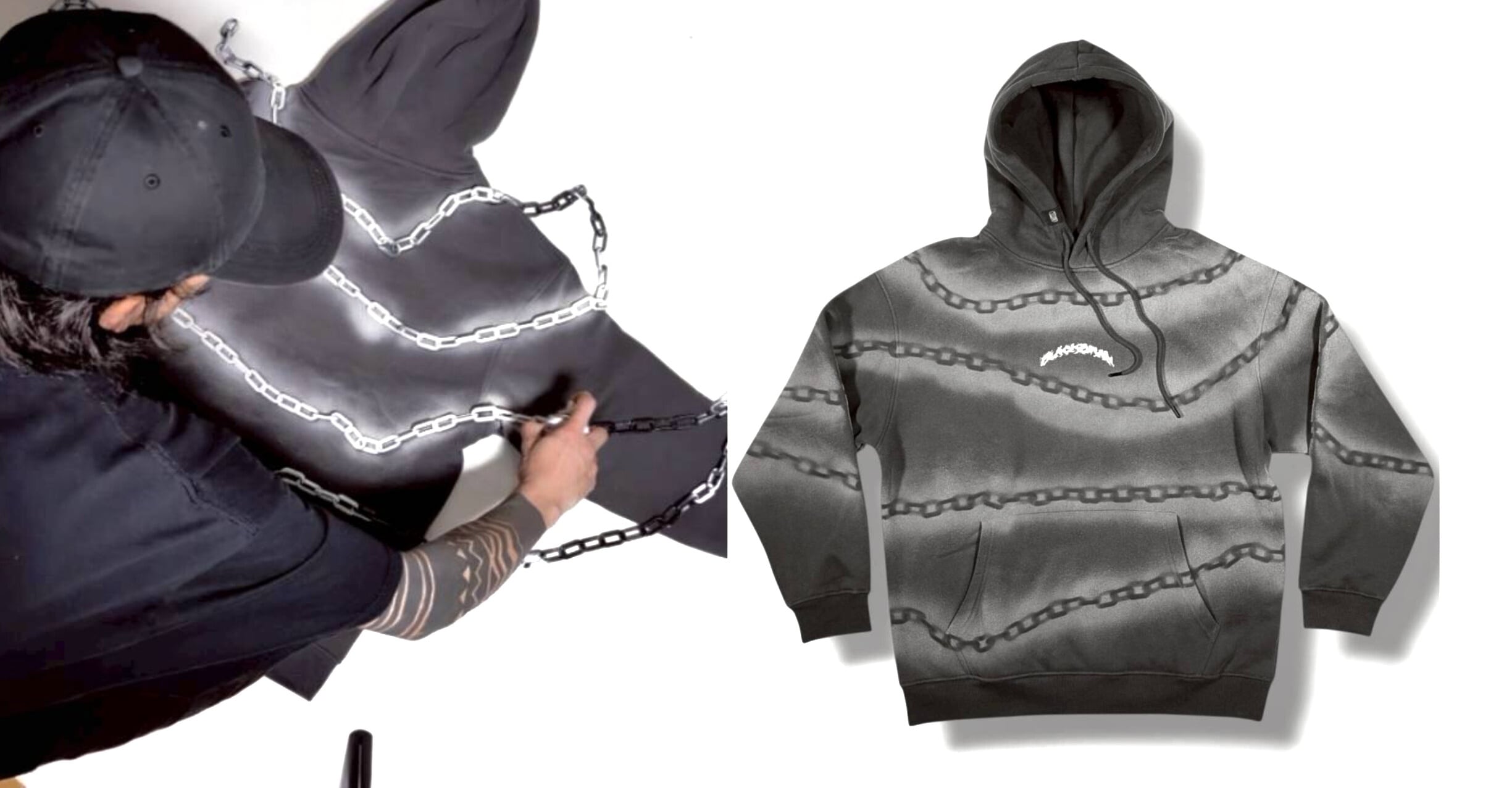こちらの商品は、チェーンとスプレー塗料を使い全体にステンシルのような加工を施したHoodieです。すべて一点ものです。 制作事の動画はこちら⇩ [ https://www.instagram.com/reel/DQEoURJEsWP/ ] 加工がかなりめんどくさい+めちゃくちゃ良いボディを使ったので値段がちょっと高くなっちゃってます。 ボディは重ためでかなりしっかりした裏起毛タイプ。頑丈であったかいです。高級感もありフードも立ちます。シルエットもボックスです。 【注意】 ・このHoodieはスプレー塗料で加工しているので、本体に塗料の汚れやシミ、液だれなどが残っている場合があります。 ・このHoodieはスプレー塗料加工しているので、本体に塗料の匂いなどがついている場合があります。 ・このHoodieはスプレー塗料で加工しているので、洗濯などの際に色や加工自体などが徐々に落ちます。 より長く加工を保つためには摩擦を避け、お洗濯の際も裏返してネットに入れるなどして洗ってください ・シルクスクリーン部分にはインクのにじみ、かけ、割れ、ヒビ等がある場合があります。 ・こちらの商品は返品、交換などはできません。 ・すべてご理解のうえでご購入ください。 ■サイズ (L) [着丈 70cm]-[身幅 62cm] (XL) [着丈 74cm]-[身幅 67cm] ※ボックスシルエットです ※手採寸のため1インチ程度の誤差がある場合があります ■素材 12オンス フリース(裏起毛) 42%コットン 58%ポリエステル ■返品、キャンセル不可 当社では、商品ご購入後のキャンセルや返品及び交換は原則として受け付けておりません。 加工は徐々に薄くなりますのでご理解のうえでご購入ください。