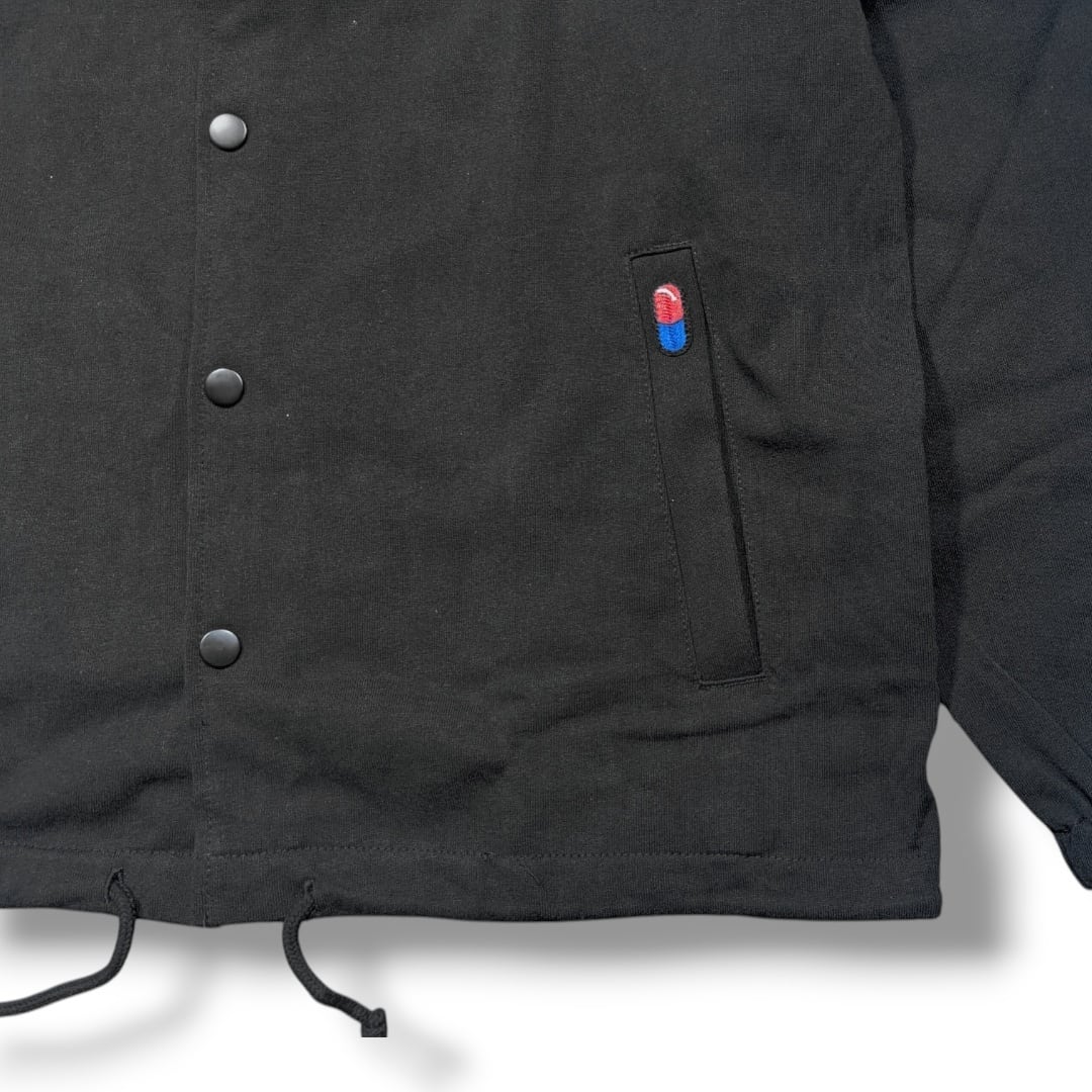 10オンスのコットンジャージ素材をしているため着心地がよく秋〜春まで長く着用できます。真冬はシャツのようにアウターの中に着用することも可能です。ナイロン製のコーチジャケットとは少し違う雰囲気です。