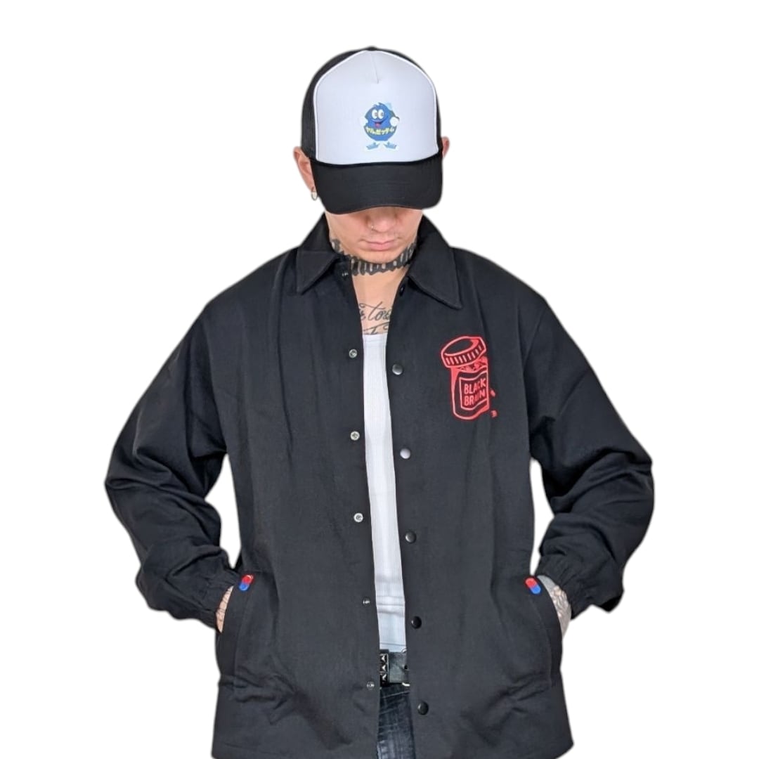 本体の両サイドに装備された左右のサイドポケットの入り口にはBLACK BRAIN定番の赤青ピルモチーフを刺繍で再現しました。