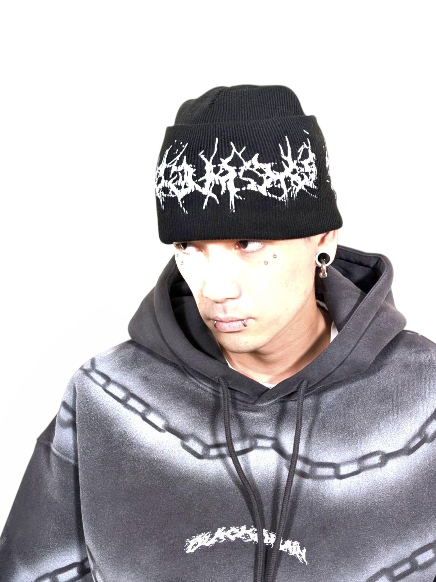 ニット素材にシルクスクリーンをする場合、インクがニット素材の伸びに対応できないため、必ずひび割れます。そういう商品です。ですが、ひび割れるとより魅力が増すグラフィックを選んでいますのでどんどんかぶってどんどんひび割れさせて下さい。