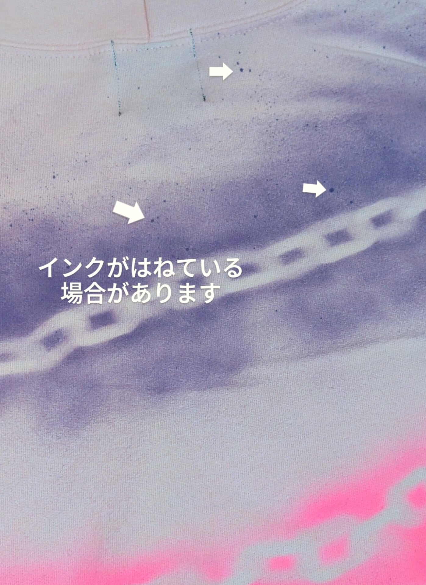 ・このHoodieはスプレー塗料で加工しているので、本体に塗料の汚れやシミ、液だれなどが残っている場合があります。