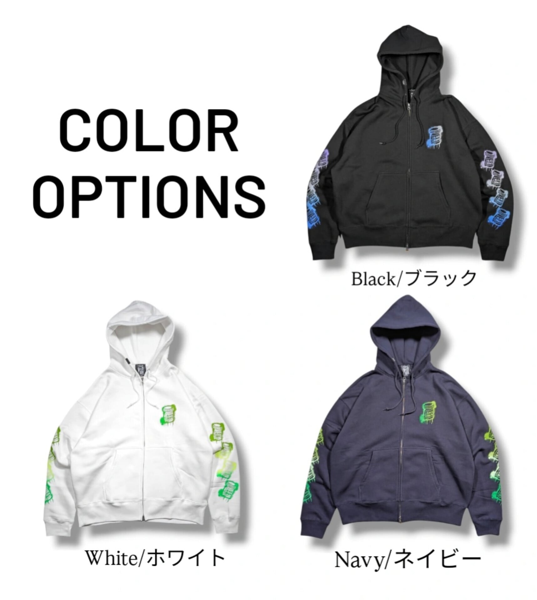 ボックスシルエットジップフーディーで素材は裏起毛です。生地もしっかりしてます。