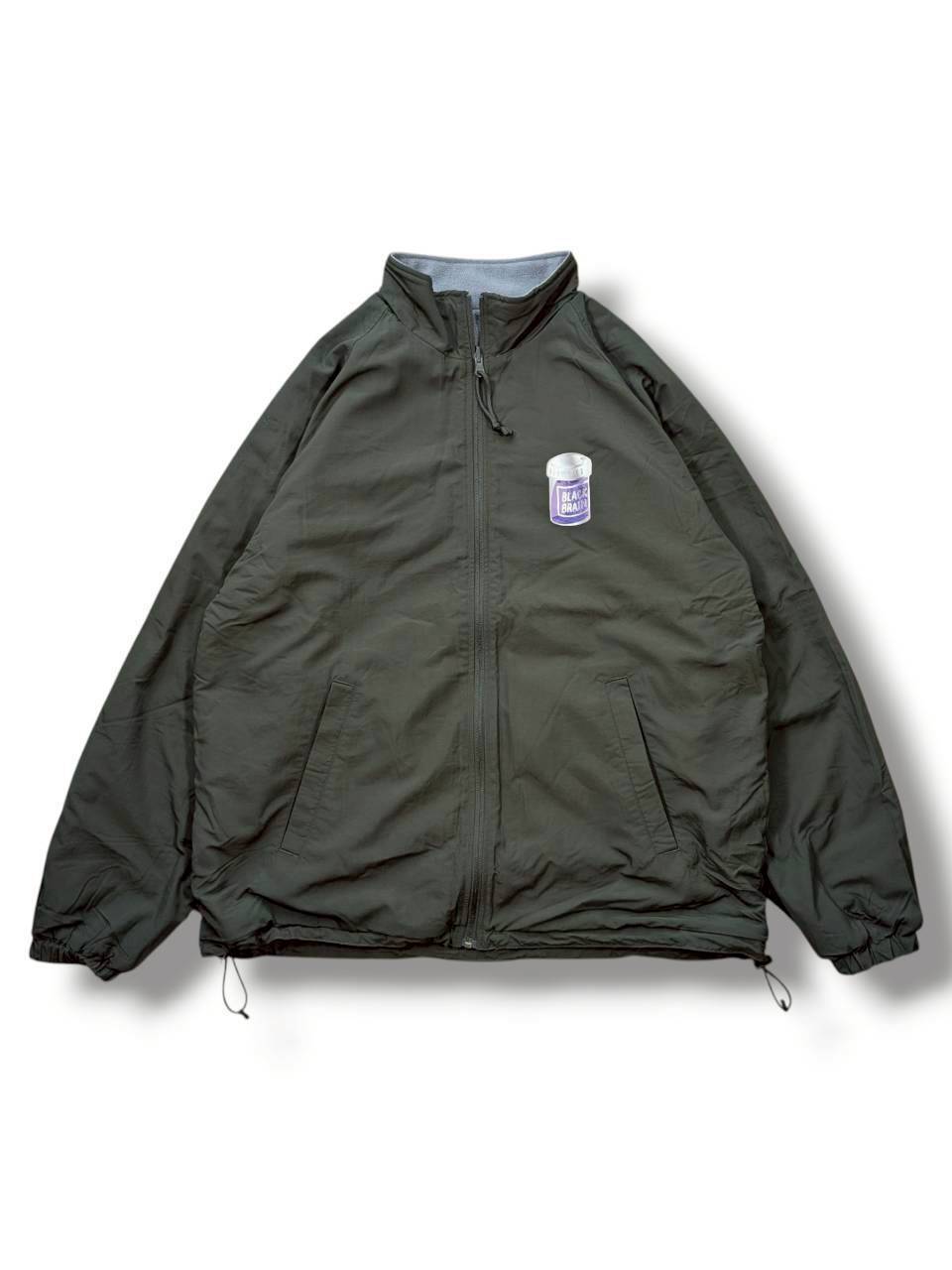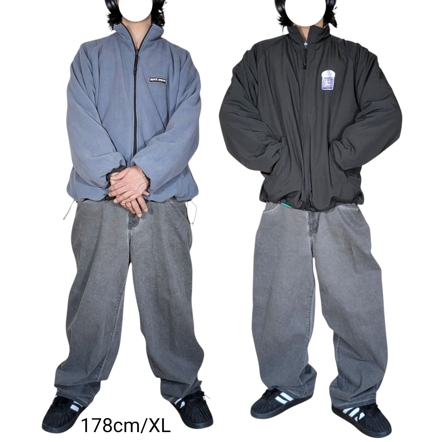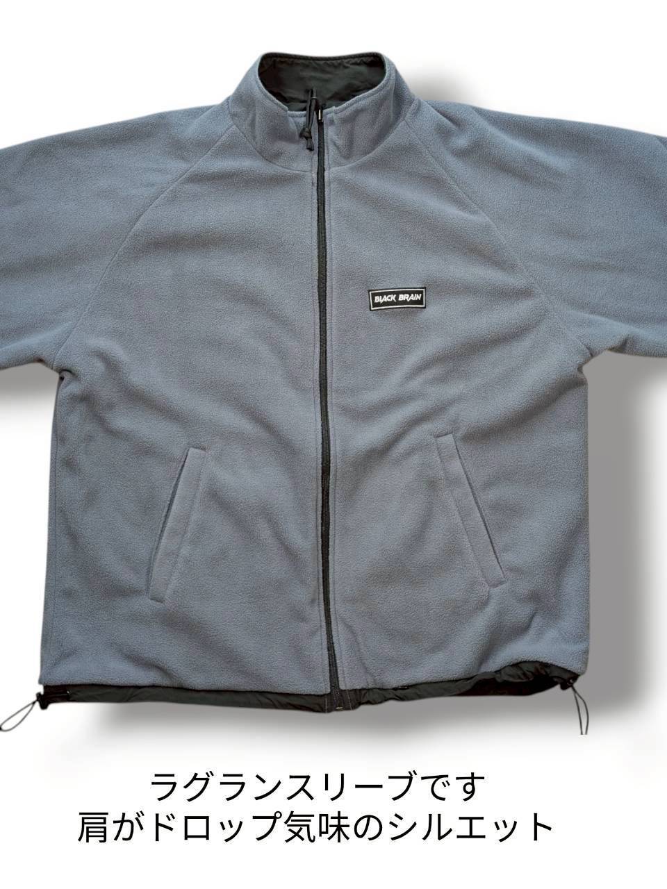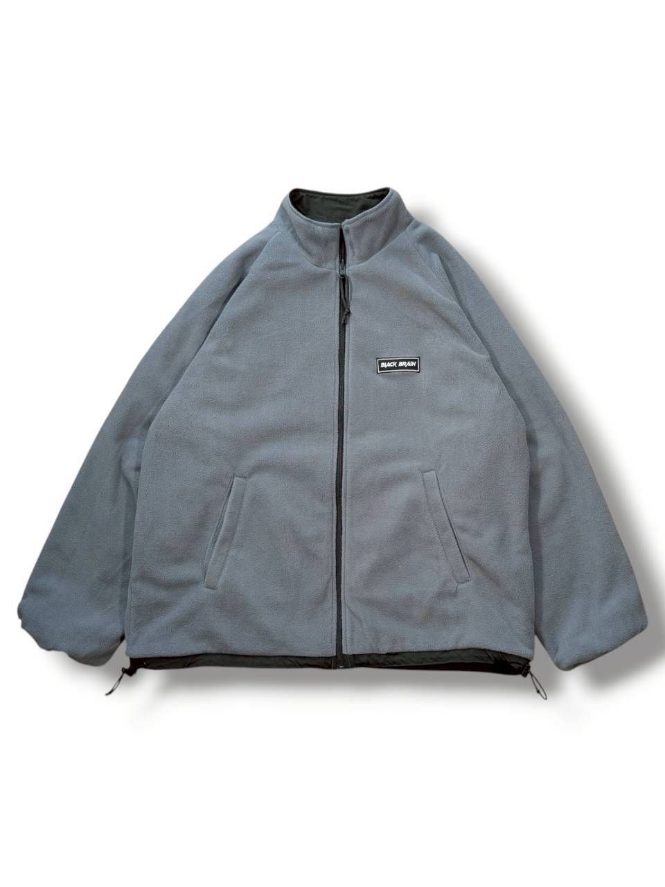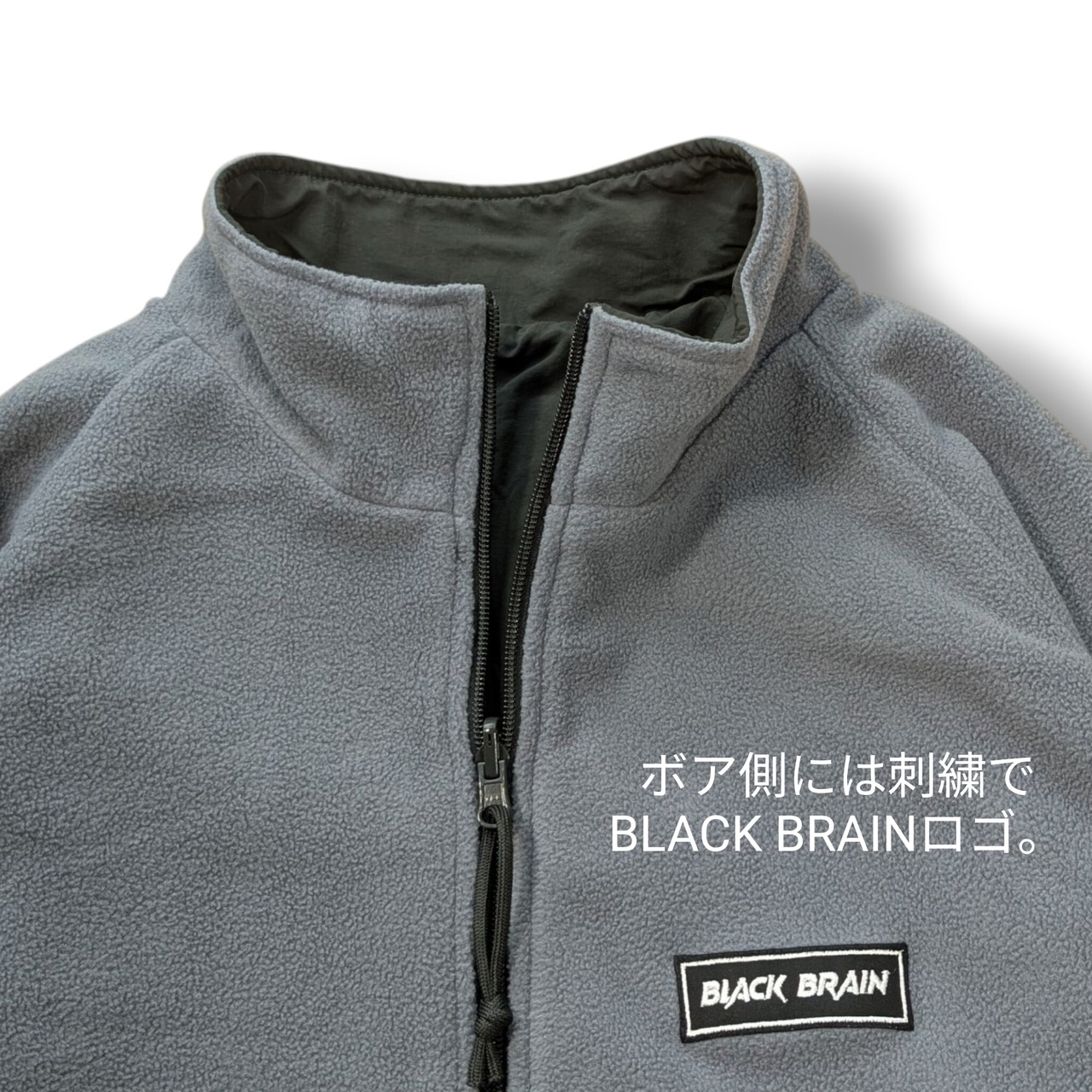 つるりとしたナイロンシェル面にはLeanロゴをフルカラーでプリント。モコモコしたボア面にはBLACK BRAINロゴを刺繍で施しました。
