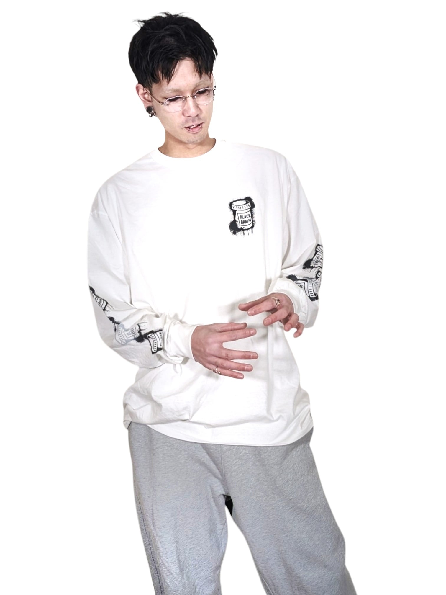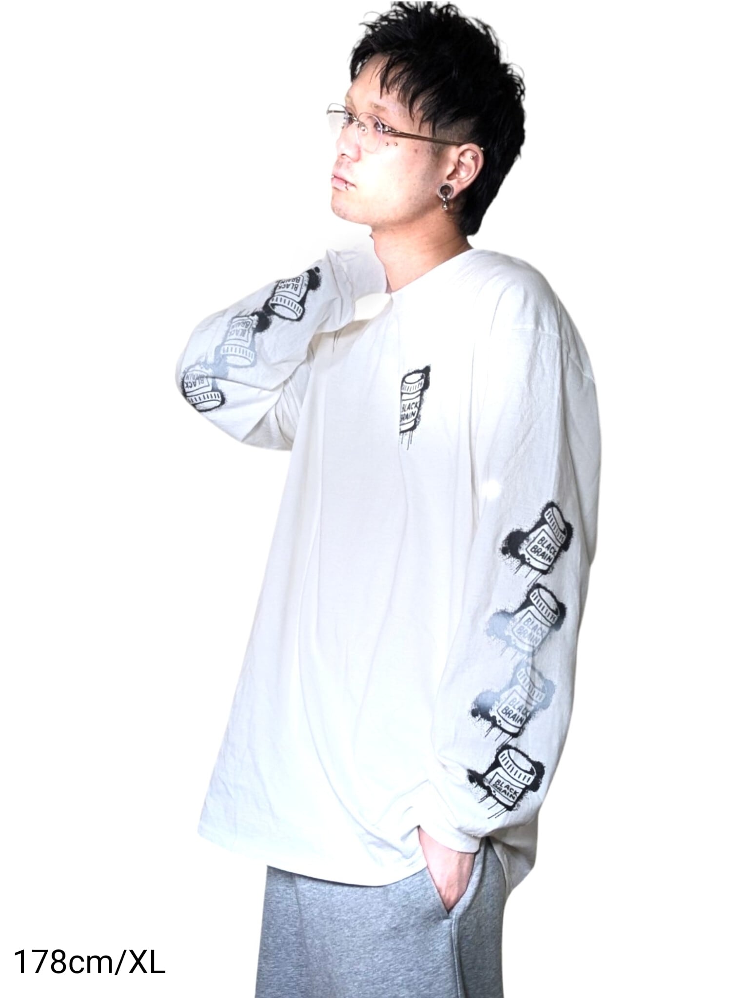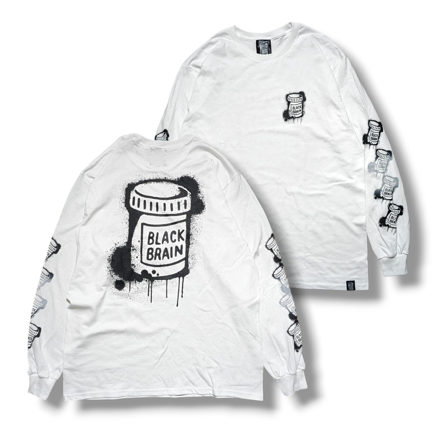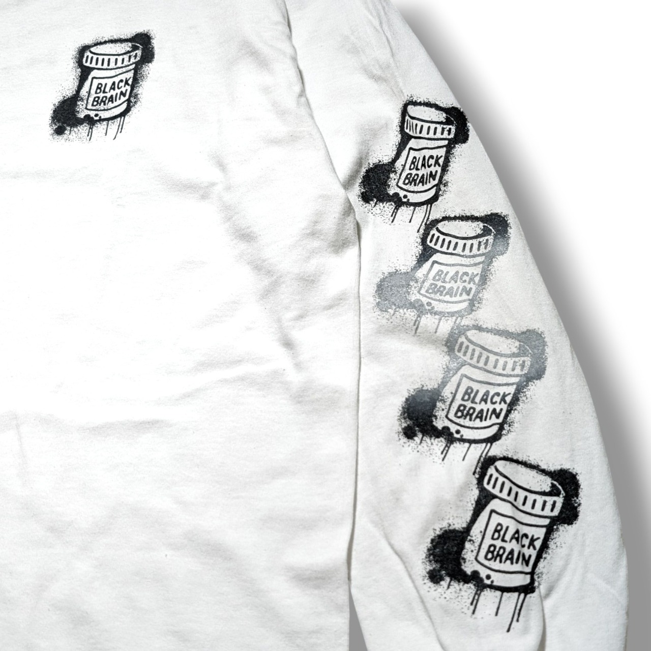 BLACK BRAINの定番ロンT、“Dripped LS Tee”の袖部分のグラフィックを一部グラデーションプリントにしアップデート。